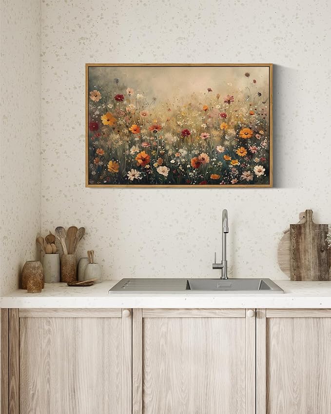 InSimSea Framed Canvas Wall Art Vintage Decor, Wall Decor for Living Room Bedroom Office Bathroom, Large Nature Landscape Flower Wildflower Oil Painting Prints, Home Decorations, 16x24inch
