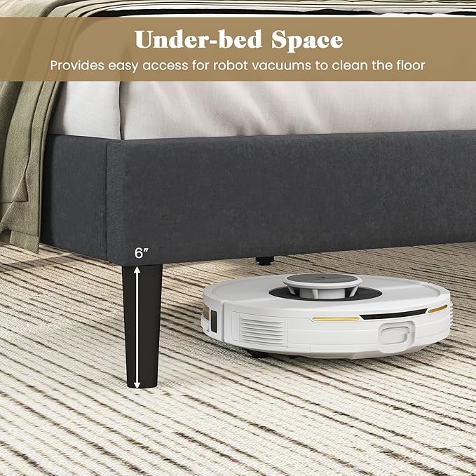 - Stylish Modern Design: Enhance your bedroom decor with this gray platform bed featuring a sleek vertical channel tufted headboard. The 6" under-bed space provides easy access for robot vacuums to clean the floor.