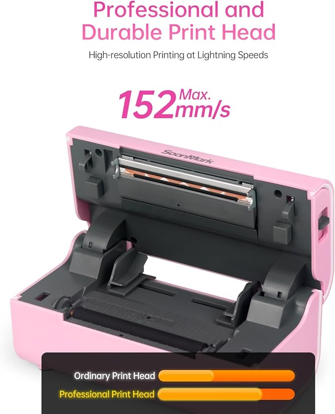 Bluetooth Thermal Label Printer, Wireless 4x6 Shipping Label Printer for Small Business Shipping Packages, Compatible with iPhone, Android, Mac, Windows, Etsy, Ebay, Shopify, USPS (Pink)