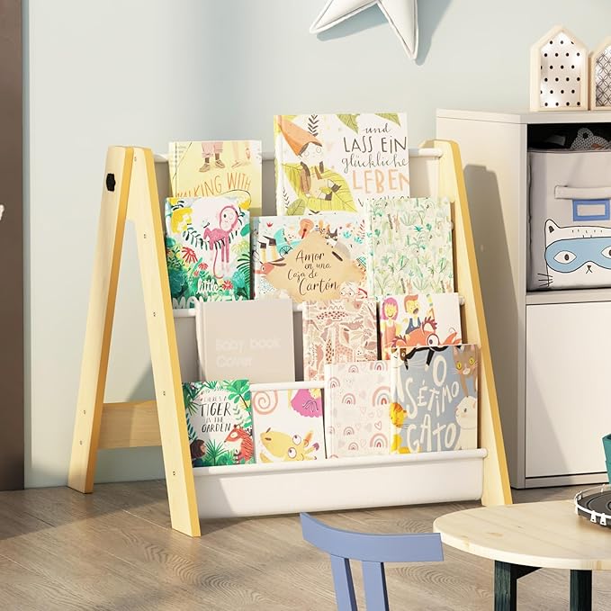 - 【Child-Friendly Design & Easy Book Display】 Our toddler bookshelf is designed for safety and convenience, with smooth edges and a sturdy, child-safe build. The front-facing design helps toddlers view and select books easily, encouraging independent reading. It’s perfect for nurseries and kids’ rooms, and it’s foldable for easy storage.