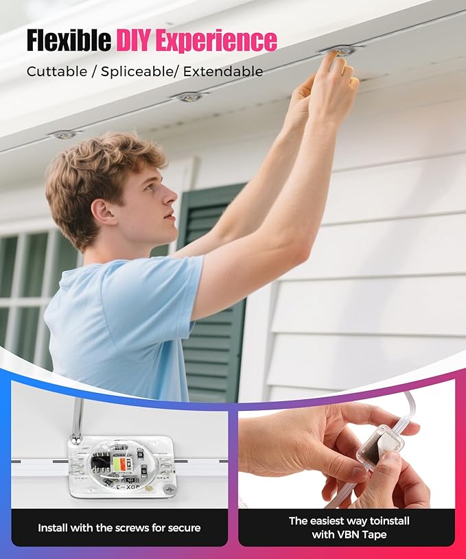 - ๐๐ฆ๐๐ซ๐ญ ๐๐จ๐ง๐ & ๐๐จ๐ข๐๐ ๐๐จ๐ง๐ญ๐ซ๐จ๐ฅ๏ผControl all outdoor lights in your home through the app! Customize brightness, color, timers, and security modes. Synchronize lights with music, or create dazzling light shows with a single click!