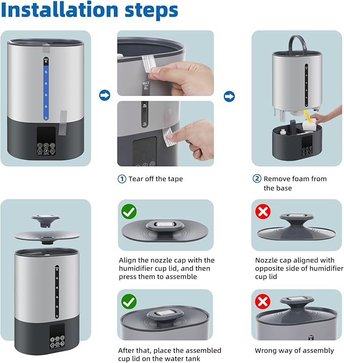 - Great Surprise and Satisfying Service:The room humidifiers makes for a perfect housewarming, birthday, Thanksgiving, or Christmas surprise for friends and family.When there is a problem, our customer support team is here to help. If you have a defective product, please contact us in time Tips for Use: When the water level in the tank is too low, the red water shortage indicator on the screen flashes or the screen displays "E2", this is the anti-dry burn device is activating, please restart after adding water in time