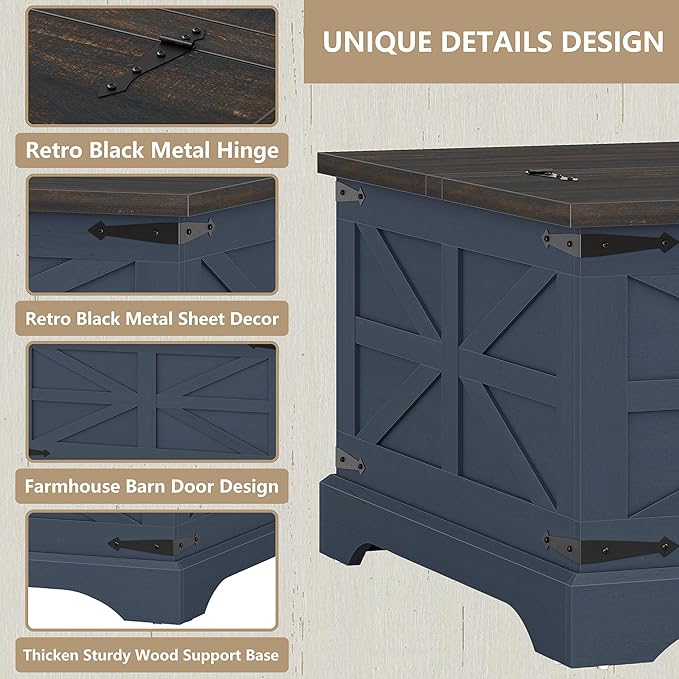 Furnideco Square Coffee Table with Storage Farmhouse Coffee Table with Lifting Top Modern Wood Center Table for Living Room Home Office, Blue