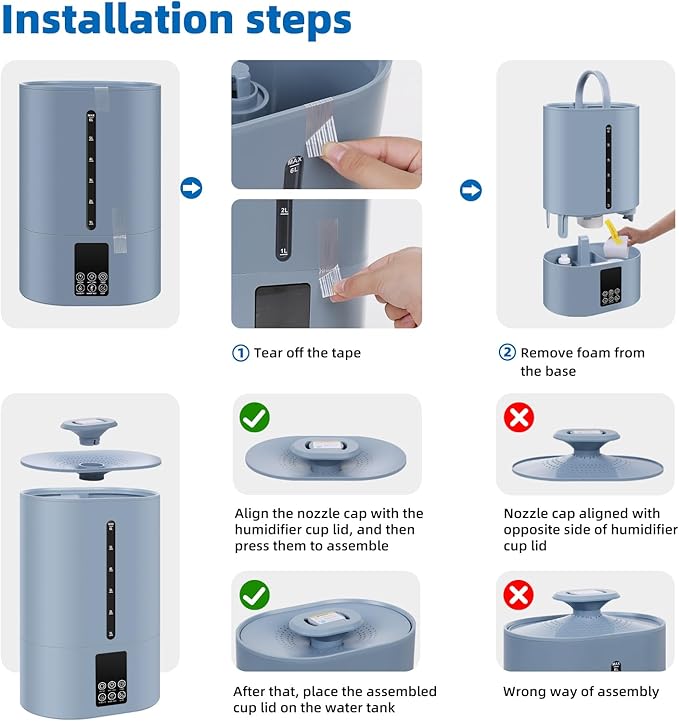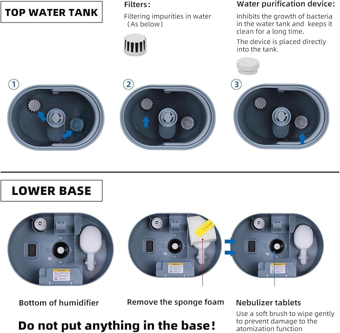 - Warm and Cool Mist Humidifiers:Our ultrasonic humidifiers offers both cool and warm mist options, switchable with a single touch. The strong cool mist humidifier the dry room air for improved sleep. The warm mist humidifier is ideal for moisturizing the skin and easing discomfort.Note: Remove the white foam from the base before use