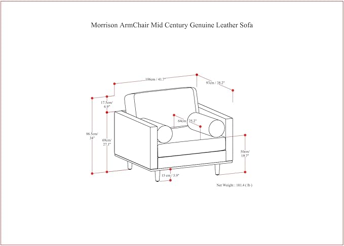 - STYLISH MID-CENTURY DESIGN: Handcrafted armchair measuring 42.9" W x 38.25" D x 34" H accommodates up to 300 lbs; features clean lines and inviting comfort perfect for any living space