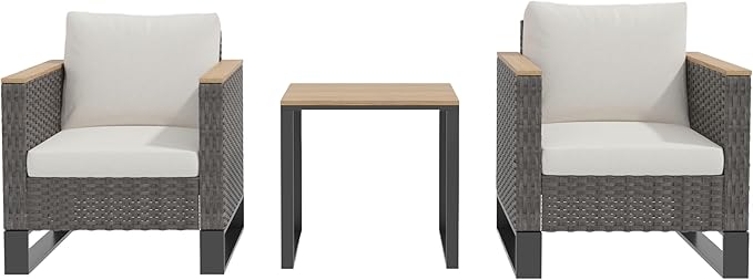 Ypati 3-Piece Handwoven Rattan Patio Conversation Set, Aluminum Frame with All Weather Coating, for Porch, Balcony, Garden, 2 Comfortable Chairs with Coffee Table, Black & Light Gray, Eureka