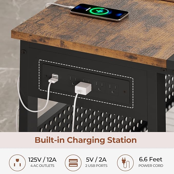 - 【Built-in Charging Station】Our home office Desk includes 4-outlet & 2 USB ports to provide power for up to 6 devices simultaneously. Power outlet allows you to charge mobile devices such as cell phones, tablets, printers, etc.