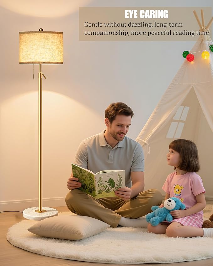 - Stability and Durable Build: The marble base (10" in diameter) enhances stability. It ensures a long service life with reinforced metal pole and double-stitched linen lampshades. This stable standing lamp for living room or bedroom is ideal for homes with kids/pets.