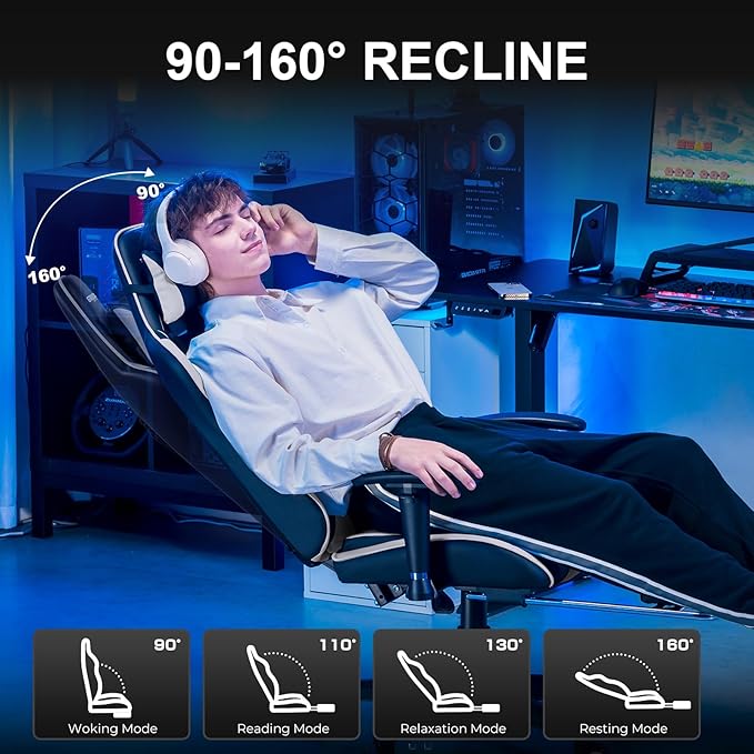 - Enhanced Lumbar and Neck Support System: Contoured backrest with adaptive cushioning aligns with natural spine curvature, paired with a detachable headrest that maintains proper posture during marathon video game chair usage or remote conference calls.