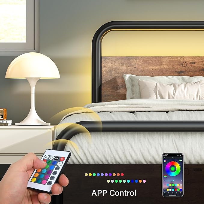 - Queen Bed Frame with LED Light:The LED of the bed frame queen with under-bed storage will create a leisurely atmosphere for your nights. You can adjust its 20 modes according to your mood, ensuring a comfortable resting environment in this rustic queen bed frame with LED lights.