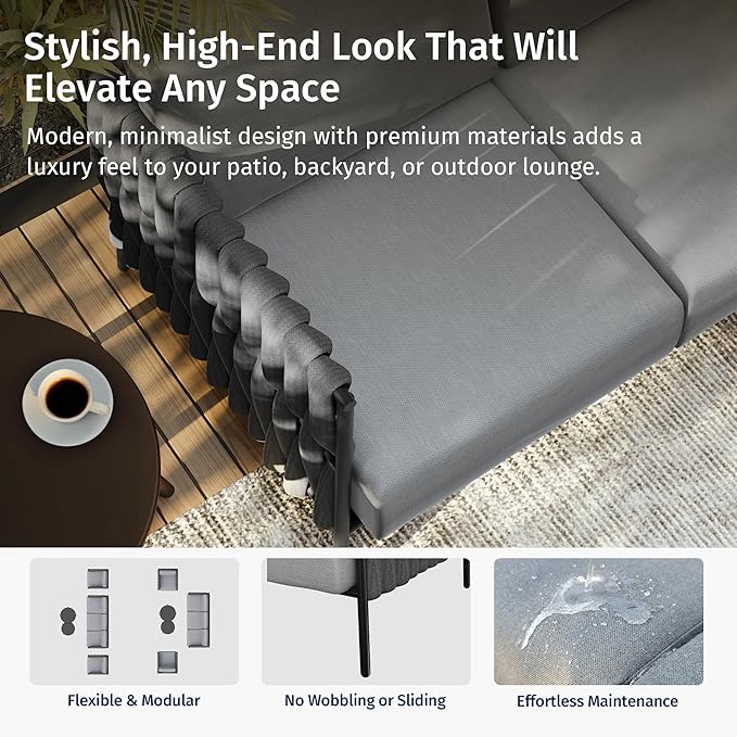 - UNMATCHED OUTDOOR DURABILITY: Crafted with a heavy-duty steel frame and durable Olefin rope, this 5-piece set resists rust, fading, and weather damage. The waterproof, breathable cushion covers ensure all-season comfort, making it perfect for outdoor use year after year