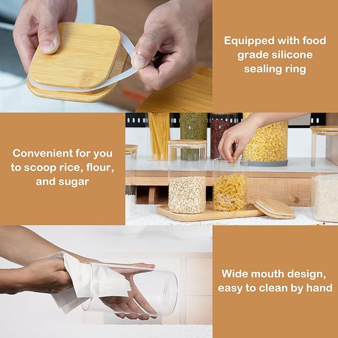 - [Multi-functional glass storage container]- This D2scrma airtight glass canisters with a natural bamboo lid and a good silicone seal ensures an airtight storage environment that keeps items fresh and extends their shelf life. Not only for kitchen storage, but even for pet food or other household items such as laundry beads, bathroom cotton balls, etc.