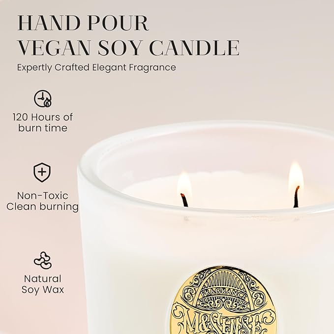 M&SENSE Large Two-Wick Soy Candle | Creamy Vanilla Pie & White | 19.8 oz, 120H Burn Time | Luxury Scented Candle for Relaxation, Gifting, Home Décor | Ideal for Bedroom, Office, Party Ambiance
