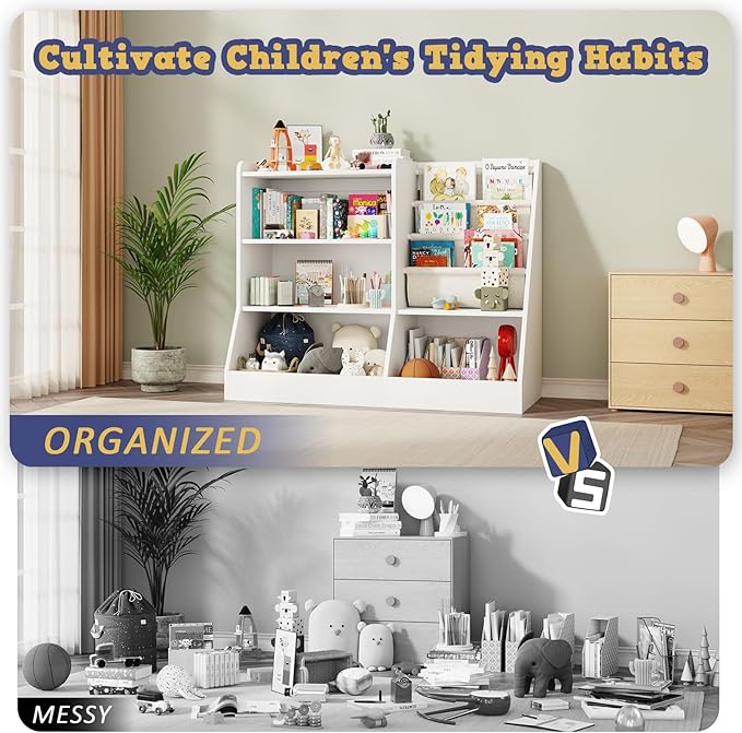 - Multi-Functional Use --- This Kids Wooden Bookshelf is suitable for bedroom, kindergarten, classroom, living room and other multiple places; which can create a comfortable, interesting reading corner for child to cultivate. This toddler bookshelf can help children to tidy up their room neatly, which can be a good way to develop children's independence and organization.