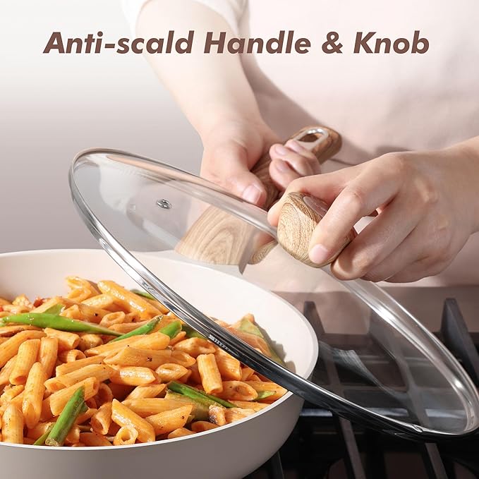- HEALTHY CERAMIC FRYING PAN - Made of natural ceramic, free of intentionally added PFOA, PTFE, PFAS, PFOS, lead and cadmium, safe and healthy. No toxic substances will be produced even overheated. No coating to come off into your food.