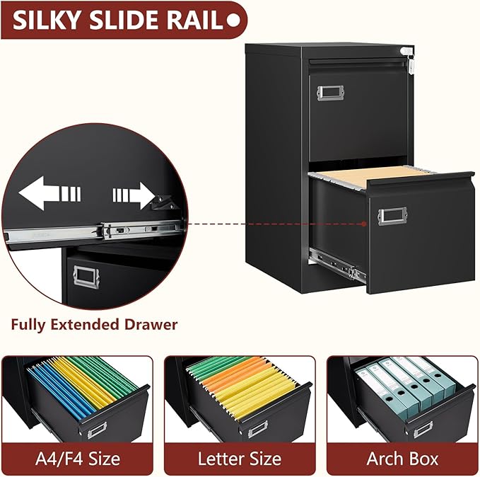 - Large Storage Capacity:RAVIGIN file cabinet offers 2 spacious drawers to organize your documents,The bottom drawer accommodates letter/legal/A4 size hanging file folders for efficient document management.