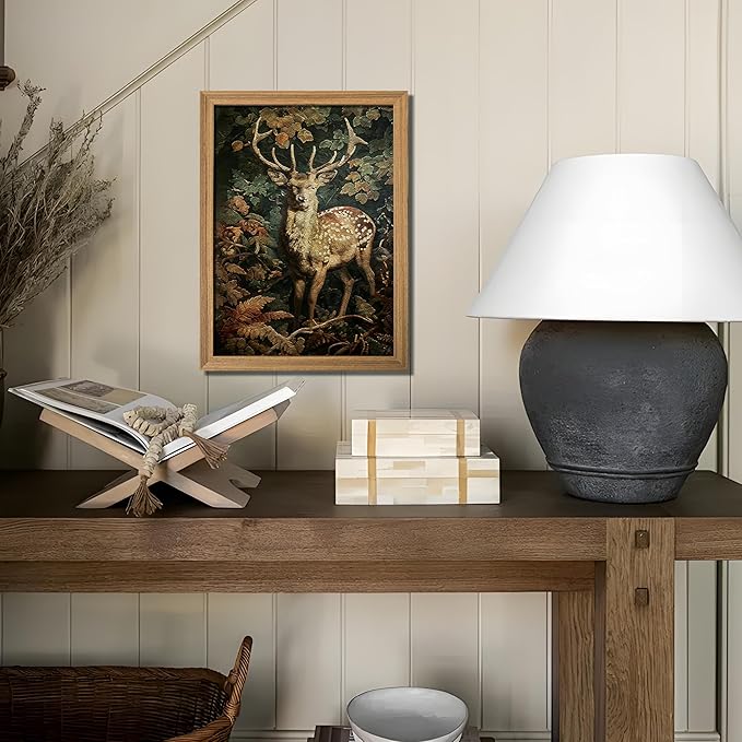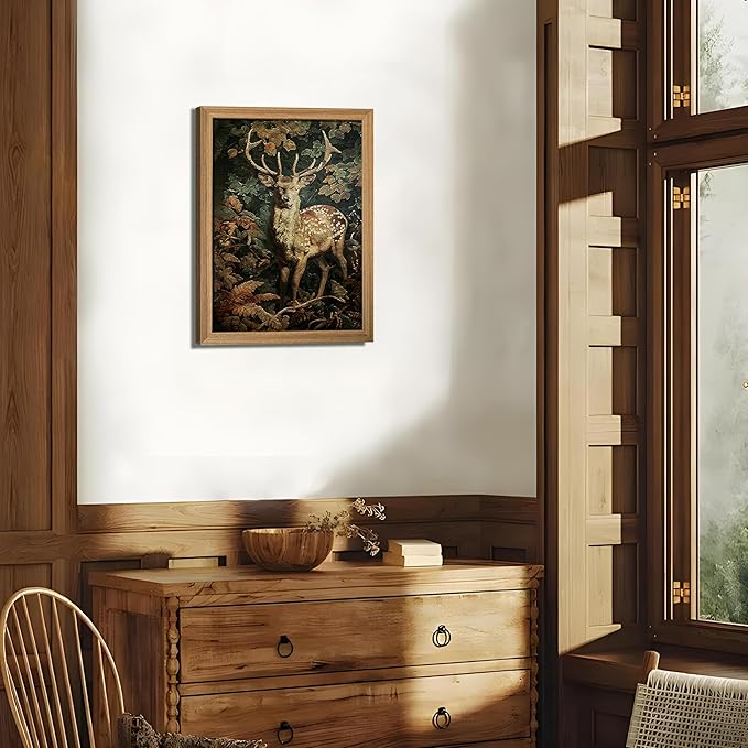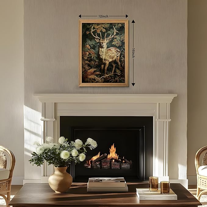 - 【Charming Vintage Wall Art】This framed 3D textured vintage wall art features a hand-drawn sandstone Sika deer and botanical florals, bringing a touch of nature and vintage charm to your living room wall art or bedroom wall art. Perfect for adding an elegant dark academia vibe to any room.