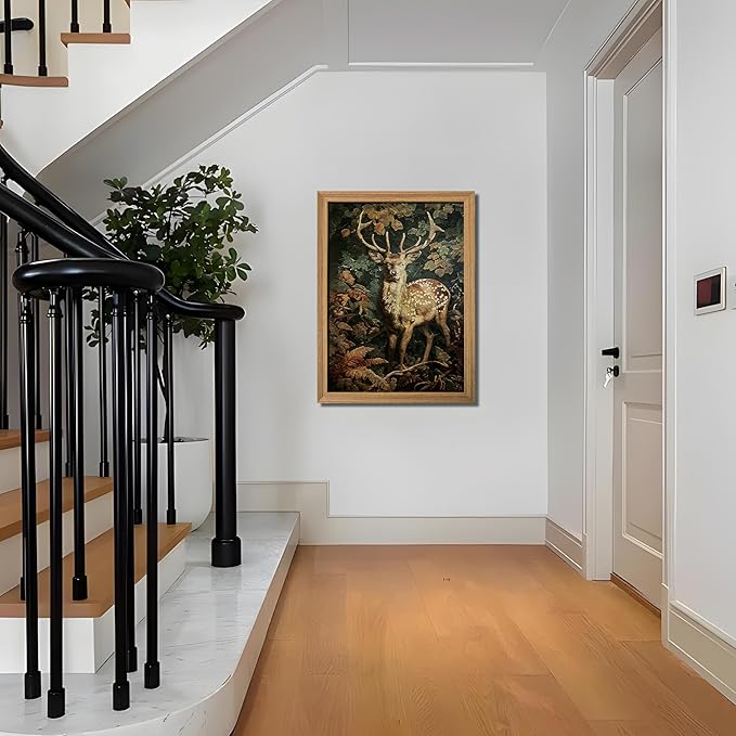 - 【3D Textured Design】With intricate textured wall art, the Sika deer and botanical florals come to life, providing a unique three-dimensional effect. Whether you're looking for nature wall art, vintage wall decor, or botanical wall art, this piece elevates the ambiance of your space.
