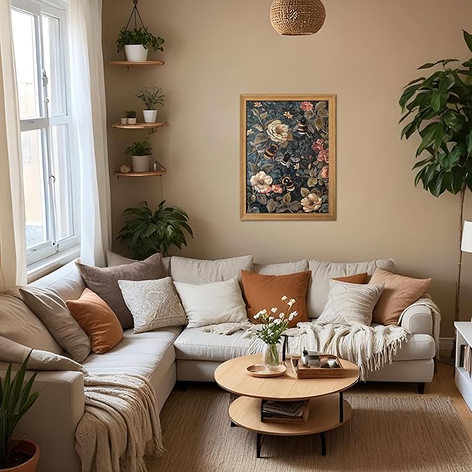 - 【Charming Vintage Wall Art】This framed 3D textured vintage wall art features a hand-drawn sandstone bumble bee surrounded by intricate botanical florals, bringing nature and vintage charm to your living room wall art or bedroom wall art. Perfect for adding a unique dark academia style to any space.