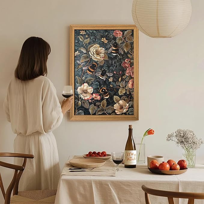 - 【3D Textured Design】With fine details and a textured surface, the bumble bee and botanical florals come to life, providing depth and dimension to your wall. Whether you're looking for nature wall art, vintage wall decor, or botanical wall art, this piece will elevate your space.