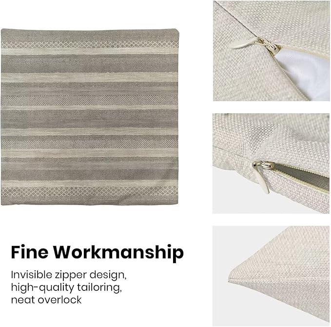 - PACKAGE SIZE: Rustic grey stripe throw pillow covers are 18x18 inch, Set of 2 pillow covers, pillow covers only, no pillow core.NOTE: Due to hand-made and sewing, please allow a deviation of 0.5-1 inch.