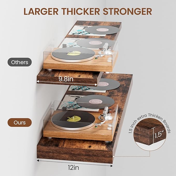 - Extra Deep Floating Shelves: Measuring 11.6” D x 35.4” W x 1.5” H, these shelves are crafted for maximum depth and durability. The spacious 12” depth gives you plenty of room for stylish display, organized storage, and decorative accents. Perfectly suited for your bathroom, kitchen, or living room, they enhance both function and flair in any space!