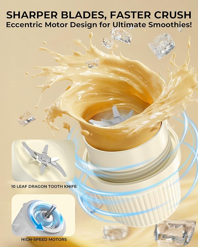 - Blend Faster & Smoother: For making fruit smoothies, the smoothie blender is much faster, finer, and smoother. Thanks to the unique eccentric motor design and a powerful motor (while most competitors use a central blade design), with a total of 10 blades of different sizes, it boosts the juicing efficiency by over 30% and the fineness by more than 50%, achieving better results in less time.
