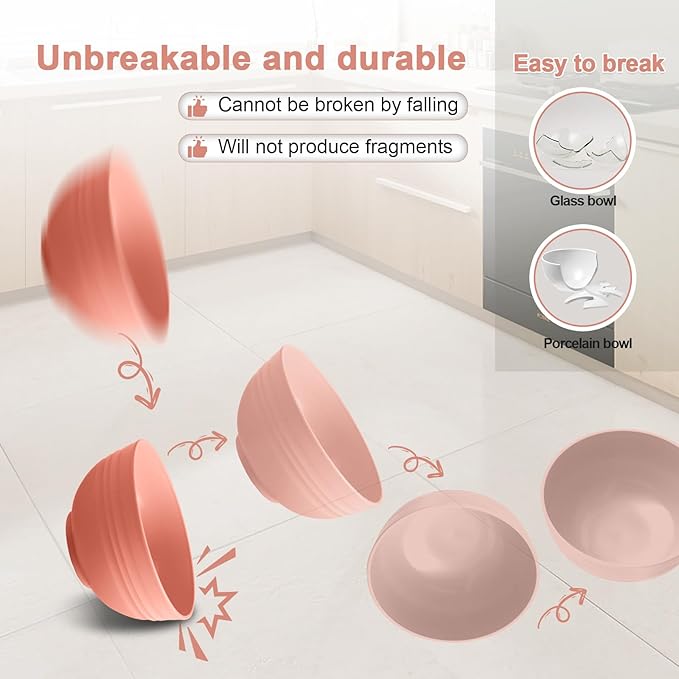 - 12 Pcs Wheat Straw Bowl in 6 Color: Our product contains:12 pcs wheat straw bowl in 6 colors, 2 per. These bowls are made of natural wheat straw fiber, which makes them clean and healthy. 6 bright and beautiful colors could meet different people and use scenarios. Thickened material makes them more durable and long-lasting.