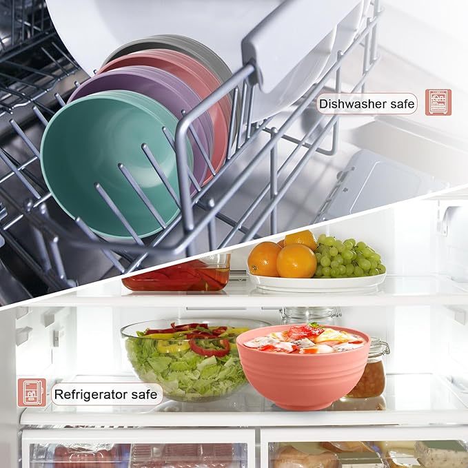 12 Pcs Unbreakable Cereal Bowls Set, 26 Oz Wheat Straw Bowls Set, Microwave & Dishwasher Safe Bowls for Kitchen, Reusable Plastic Bowls for Soup, Salad and Snack, BPA Free, Multicolor