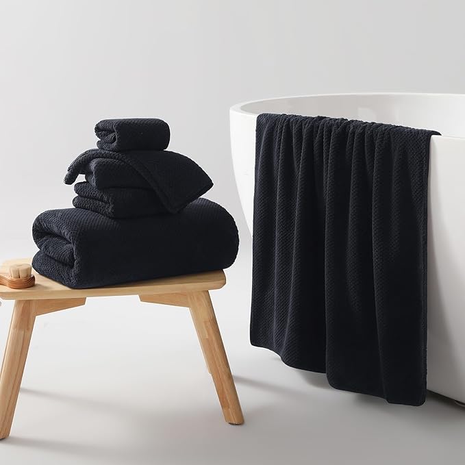 REDKISS 6-Piece Bath Towel Set - 2 Washcloths, 2 Hand Towels, 2 Bath Towels | Ultra-Fiber Coral Fleece, Super Absorbent, No Lint & No Fading | Perfect for Bathroom, Spa, Gym | Family & Adults-Black