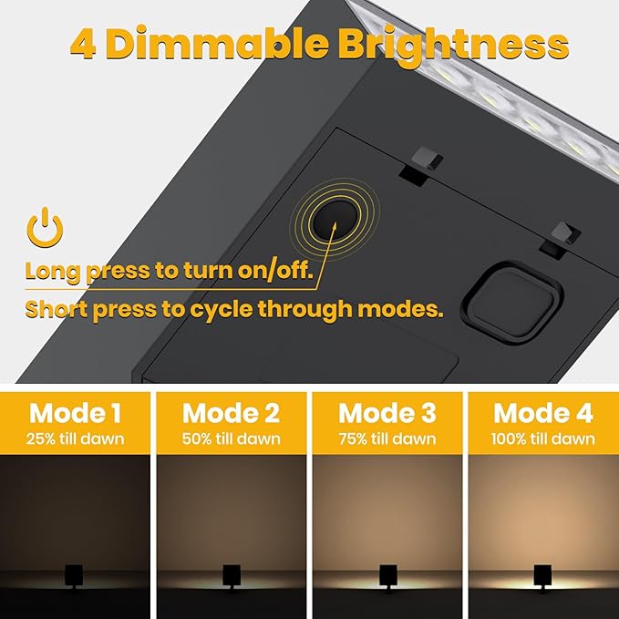 - Dimmable Solar Path Lights: With 4 adjustable brightness levels, this landscape spot light allow you to set the perfect mood and visibility for your outdoor space. Product Dimensions: 5.11"L x 3.35"W x 1.12"T