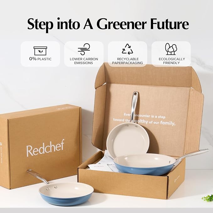 Redchef Ceramic Non Stick Egg Pans, Nonstick Frying Pan Skillet, 8 inch Cooking Pan Non Toxic with Stay Cool Handle for Induction, PTFE & PFAS & PFOA Free, Dishwasher/Oven Safe (Blue)