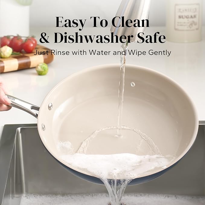 - COOL & STURDY HANDLE: Crafted from lightweight, precision-pressed stainless steel, this ergonomically designed handle ensures a comfortable grip. Double-riveted for exceptional strength and maneuverability, ceramic saute pan empowers you to seamlessly transition from stovetop to oven, allowing you to achieve that flawless sear, brown toppings, or even bake