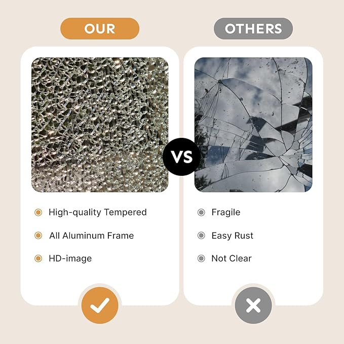 - 🖥️[ Smart Touch Control & Memory Function] – Easily adjust brightness levels (10%-100%) with the touch-sensitive panel. The mirror remembers your last setting for quick, personalized use every time.