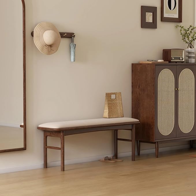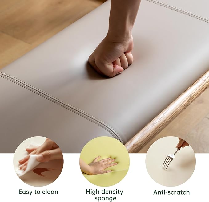 - 【 Premium Organic Leather 】 This bench is upholstered in high-quality beige organic leather, offering a soft and luxurious feel. The eco-friendly material is non-toxic and sustainably sourced, ensuring a healthy and stylish addition to your home.