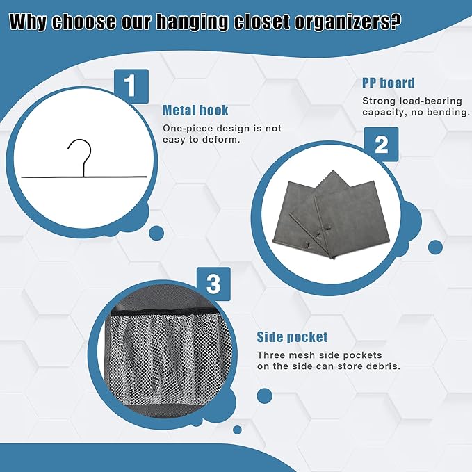 - Provide better service: Your trust and satisfaction is our greatest pursuit. If you are not satisfied with the hanging closet organizer and storage, please contact us in time. We will reply all your questions within 24 hours.