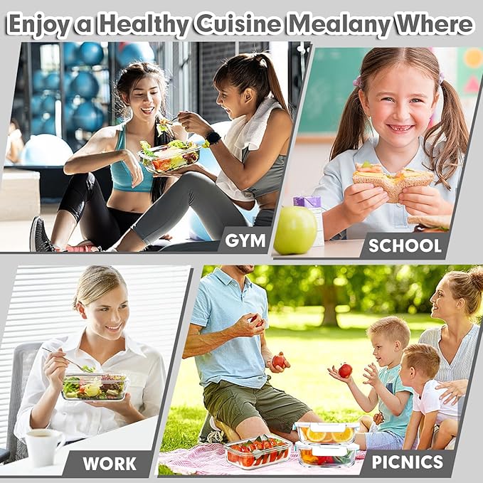- SAFE & PORTABLE: Compared to ordinary plastic meal prep containers, our glass meal prep containers are non-toxic and long-lasting, wonβt absorb food flavors, or stains, and make them easy to clean. Perfect sizes and shapes are perfect for various occasions and events.