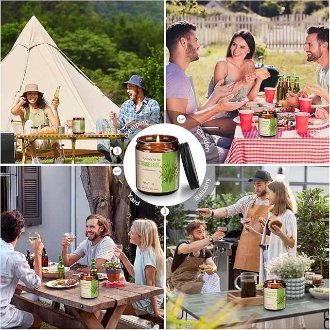 - Citronella Candles Outdoor Indoor: Whether you're in the garden, on the patio, at an outdoor movie, camping in the park or entertaining outdoors, keep this citronella candle nearby to get rid of annoying buzzes and bites. Make it a nice quiet evening for you and your family. When you use this citronella oil indoors, it will help relieve your fatigue, freshen the air and help you sleep soundly.