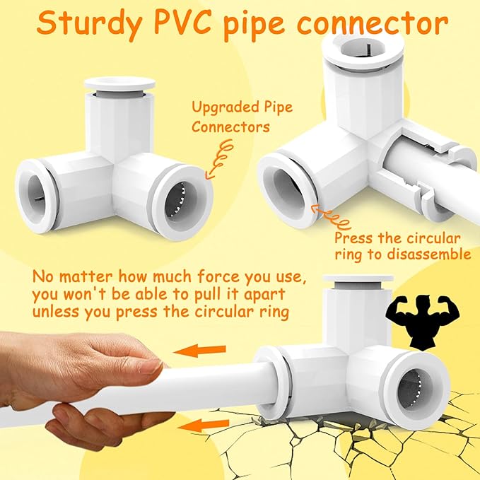 - 【Sturdy Build and Tight Connection】Crafted from thick PVC plastic, the Stuffed Animal Zoo is built to last. The PVC pipes are securely locked together with sturdy pipe connectors, ensuring no worries about pipes popping out. (note: If disassembly is needed, simply press the outer ring of the pipe connector first, then twist the pipe while pulling it out.)