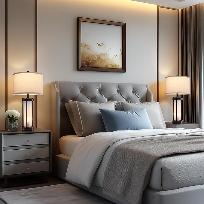 - Elegant Design: This table lamp combines modern elegance with vintage glamour. The frosted glass creates a soft and calming glow reminiscent of classic white candles, while the black metal base adds an industrial touch, making it not only suitable for vintage, rustic or industrial home environments, but also fits perfectly into modern minimalist decoration, making it a sophisticated piece of art to brighten up a space.
