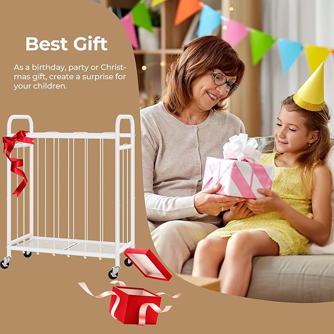 - Durable & Safe Design: Made with a thickened metal round tube frame, the rounded edges are more child-friendly compared to square tube designs, reducing the risk of injury to the head or other body parts during play. The reinforced metal mesh bottom and high-elasticity storage ropes ensure long-lasting durability and strength.