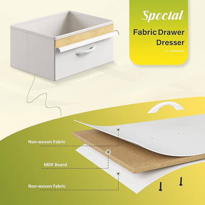 - 【Partitioned Storage Space】The entertainment center features 2 tiers of open shelves and 2 fabric drawers, providing different storage space to display your media devices, game consoles, DVDS, PS5 and organize your books, boxes and something samll. The tv stand dresser will help you keep your room clean and organized
