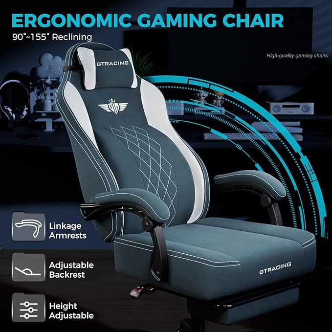 GTPLAYER Big and Tall Gaming Chair Breathable Fabric Computer Chair with Strong Lumbar Support, Comfortable Office Chairs with Pocket Spring Cushion, High Back Ergonomic Desk Chairs with Footrest