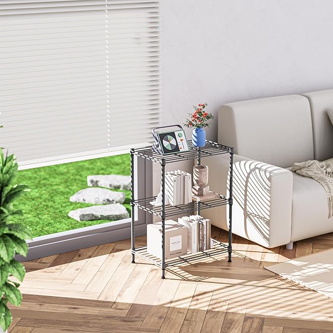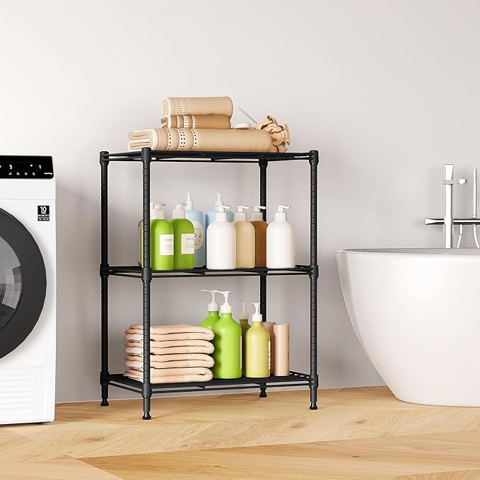 - 【Rust & Dirt Resistant】This IZEUK 3 tier shelf features a powder-coated finish that resists rust and dirt, ensuring long-term durability. Perfect as a wire shelving rack, display shelf, or skinny shelf for kitchen, pantry, laundry room organization, or garage storage.