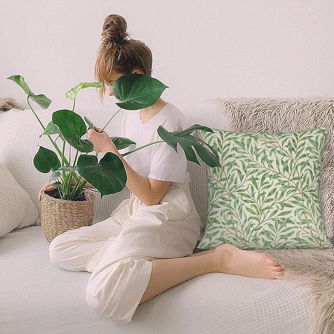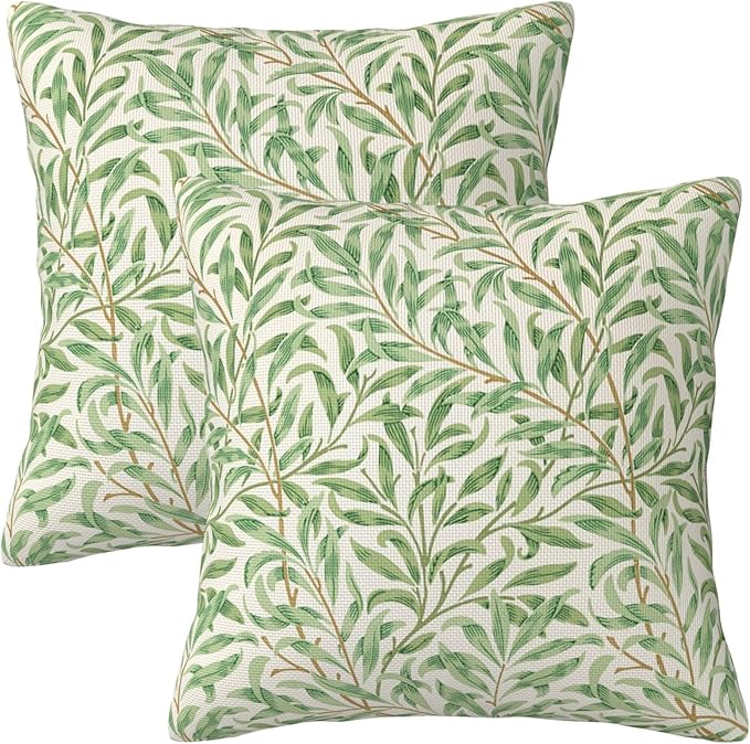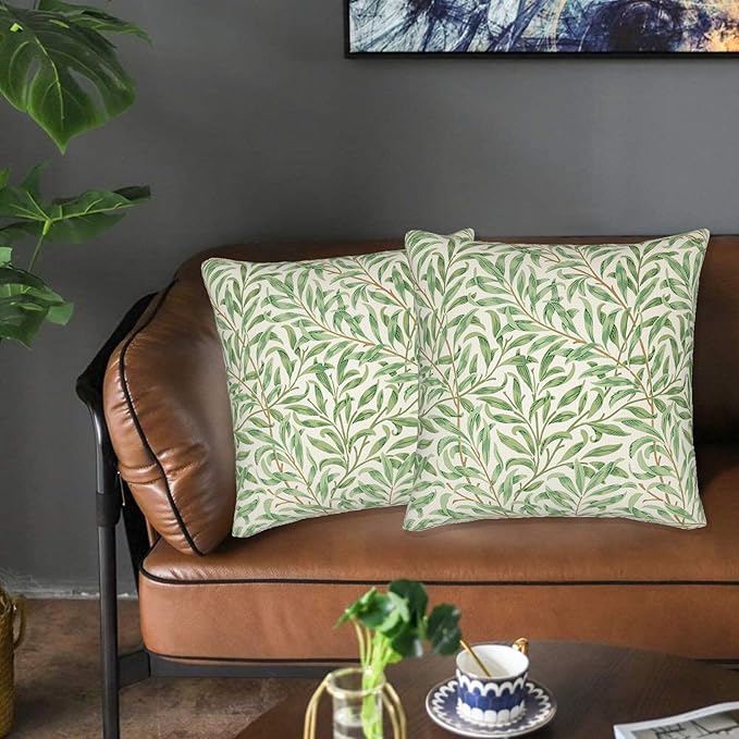 Rustic Vintage Floral Green Leaf Throw Pillow Covers 18x18 Inch Set of 2 William Morris Plants Farmhouse Decor Pillow Case Euro French Country Cushion Cover of Sofa Living Room Bedroom