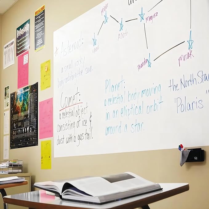 - Easy to stick: The self-adhesive whiteboard decal paper has glue on one side, so it can be pasted on any smooth surface. You can also use it as an educational board in a school classroom or a meeting board in the office, or stick it on the refrigerator at home as a notepad for lists