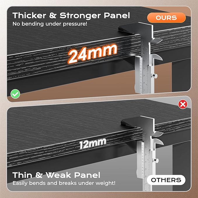 - 【Thicker Desktop & Heavy Workloads】From paperwork to creative projects, this 0.95 inches thick, high-density desktop l shaped office desk gives you the sturdy, scratch-resistant, waterproof surface and 220 lbs weight capacity you need to focus and get things done. Plenty of space for multiple monitors, notebooks, and that much-needed coffee