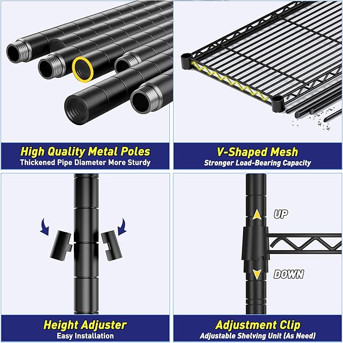 - 1010LBS Pantry shelve are made of strength steel tubing and reinforcing bars, that replace flimsy wood plank rack shelf, making them stronger and more stable than regular shelves.