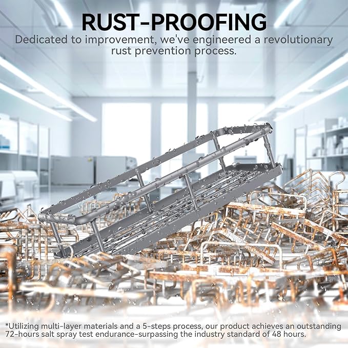 - 72-Hour Rust Test Ensures Longevity in Wet Conditions: The shower racks are coated with multi-layer premium rustproof materials and have passed the salt spray test up to 72 hours, exceeding the 48-hour standard. Thanks to the well-crafted finish, the shower wall caddy can last for more than 8 years in humid conditions. Also, the whole hollow design makes it convenient to ventilate and clean