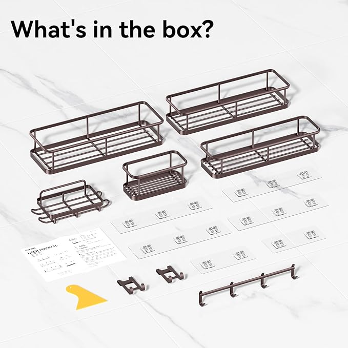 - 6 Pieces for Versatile Home Organization: The 6-piece bathroom shower shelves can be used not only in shower, but also in other cluttered areas at the same time, such as organizing spices in kitchen or cleaning supplies under sink, to keep everything in your home neat and tidy. And its sleek and modern look will add a touch of elegance to your family as a great home decor